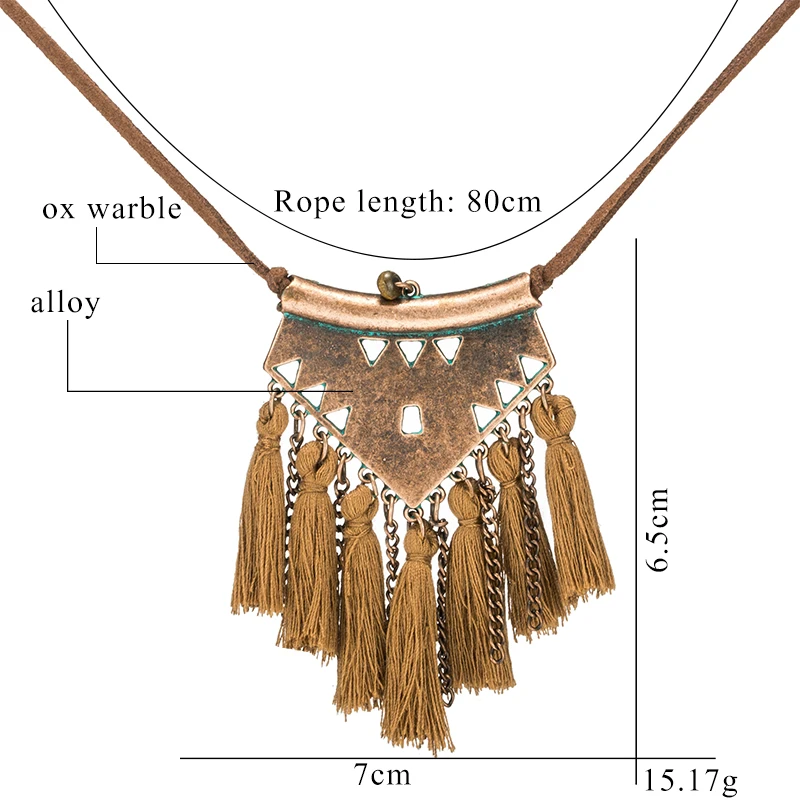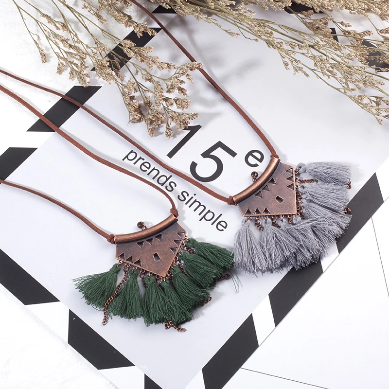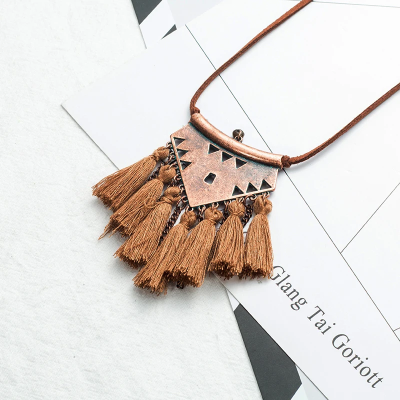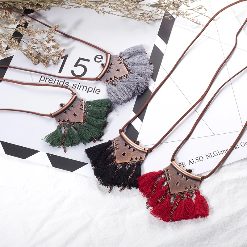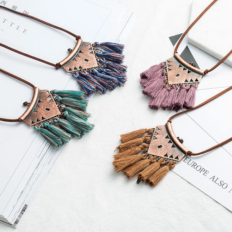 discounted Women Boho Ethnic Tassel Choker Pendant Necklace Long Leather Rope Chain Vintage Necklace For Women